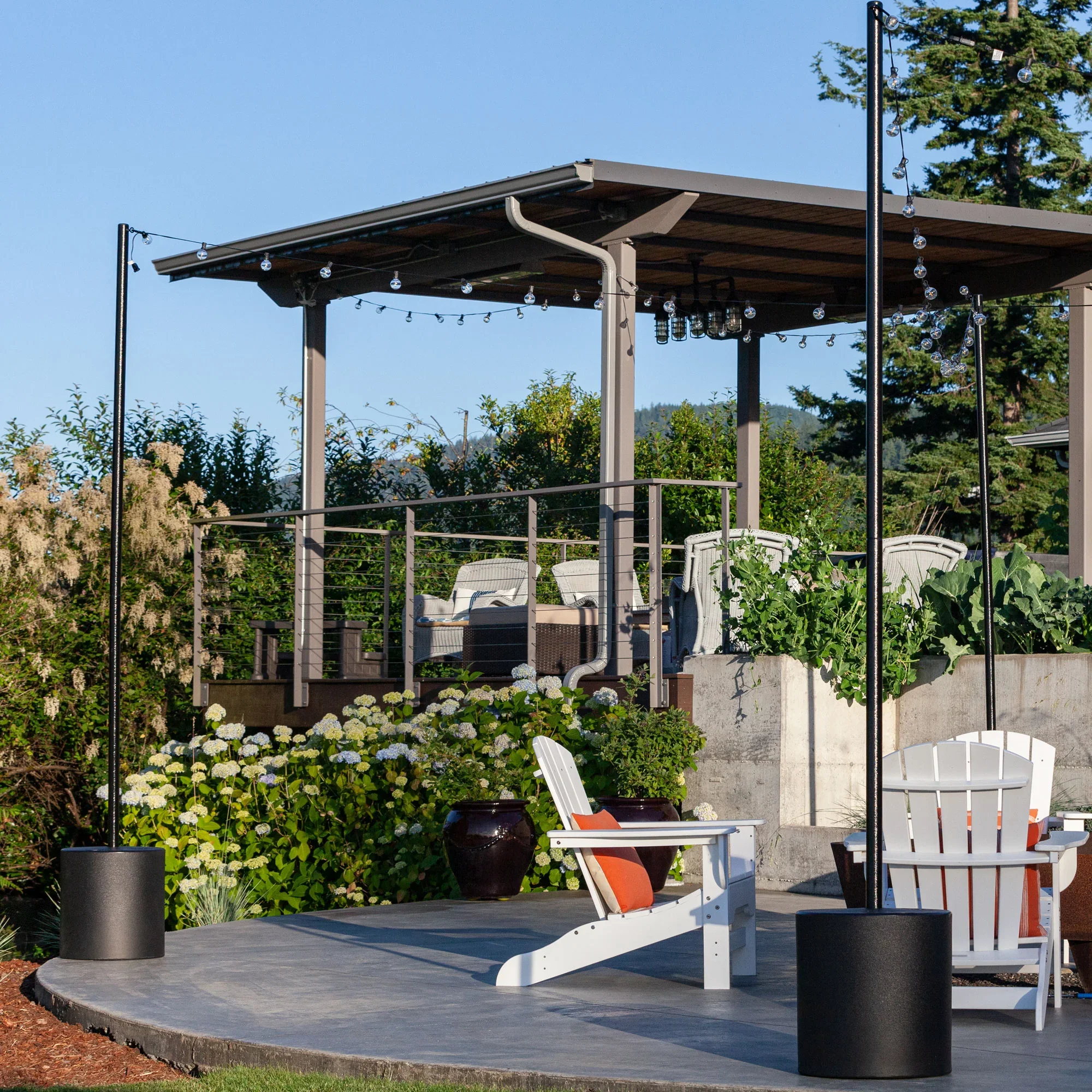 Our light poles provide a clean, structured way to hang cafe-style string lights over patios, lawns, tents, or dance floors, helping define your event space while creating a soft, welcoming glow as the sun sets.